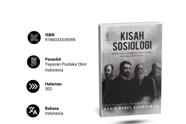 Kevin Nobel Kurniawan Buku ini menyajikan pemetaan komprehensif atas gagasan-gagasan utama dalam ilmu sosiologi melalui eksplorasi pemikiran lima belas tokoh berpengaruh, baik dari tradisi klasik maupun kontemporer. Di antaranya adalah Émile Durkheim, Karl Marx, Max Weber, Georg Simmel, Talcott Parsons, Zygmunt Bauman, Anthony Giddens, Pierre Bourdieu, Michel Foucault, Edward Said, Gayatri Spivak, Erving Goffman, Jürgen Habermas, Amitai Etzioni, dan Peter Berger. Penulis menguraikan secara sistematis biografi singkat masing-masing tokoh, landasan asumsi teoritis, elaborasi konsep-konsep utama, serta relevansi pemikiran mereka dalam konteks kehidupan sosial kontemporer. Setiap bab dilengkapi dengan ilustrasi visual dan contoh konkret yang memperkaya pemahaman pembaca terhadap dinamika relasi sosial. Di balik penyajiannya yang ringkas dan terstruktur, Kisah Sosiologi berfungsi sebagai pengantar yang efektif bagi pembaca yang ingin menelusuri jejak intelektual para pelopor sosiologi serta memahami kerangka teoritis yang membentuk analisis sosial modern. Buku ini tidak hanya menawarkan wawasan konseptual, tetapi juga mendorong pembaca untuk merefleksikan realitas sosial dan memperluas cakrawala berpikir. Pujian dari akademisi terkemuka, seperti Prof. Emeritus Kamanto Sunarto dan Dr. Indera Ratna Irawati Pattinasarany, menegaskan nilai buku ini sebagai kontribusi penting dalam literatur sosiologi Indonesia. Melalui pendekatan yang menggabungkan ilustrasi kehidupan nyata, pemaparan teori, dan pertanyaan reflektif, Kisah Sosiologi menjadi medium yang menghubungkan pembaca dengan kompleksitas pemikiran sosial secara mendalam dan bermakna.