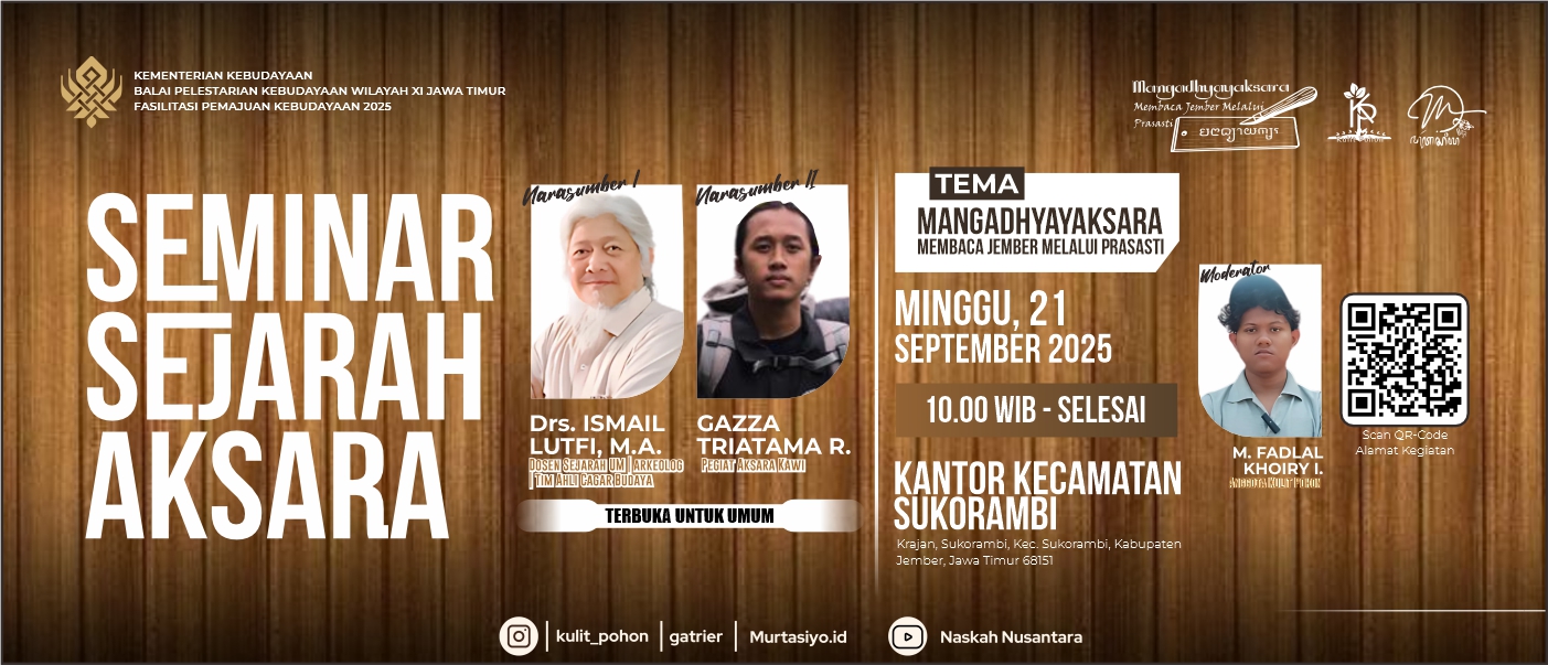 Jember, 20 September 2025 – Kabupaten Jember kembali bersiap menghadirkan sebuah ruang pembelajaran budaya yang unik dan mendalam melalui program “Kelas Aksara Kawi Mangadhyayaksara”. Program ini di inisiasi oleh Gazza Triatama Ramdhani, anggota Yayasan Studi Sejarah Kulit Pohon sekaligus mahasiswa aktif Program Studi Sejarah dan Peradaban Islam UIN Kiai Haji Achmad Siddiq Jember.